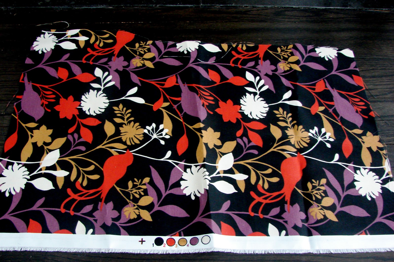 I love the color palette in these fabrics. Unusual, graphic and hot...super bright...will look great with our cherry red door.